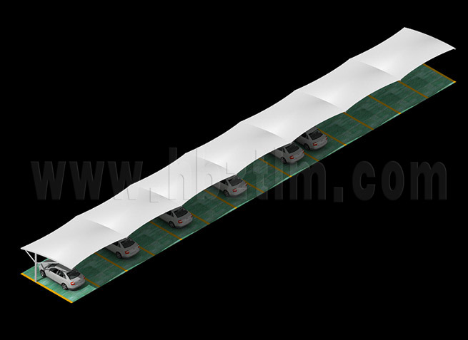 汉川吊塔式异形钢膜结构停车棚,本项目采用前软边...