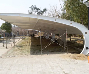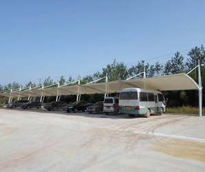 恒天嘉华吊塔式异形钢膜结构车棚,本项目采用前软...
