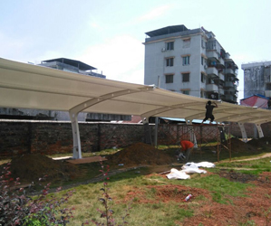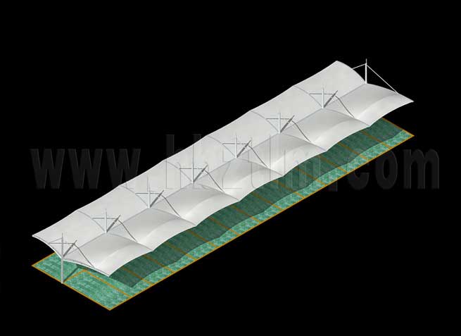 膜材采用PVDF国产或者进口建筑膜材、PTFE玻璃纤维建筑膜材、ETFE透明的永久性建筑膜材;自动放样裁剪,高频焊接,拉伸效果超强,曲线成型可千变万化;膜材质保一般可达15-20年。