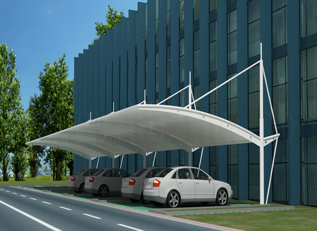 韶关质监局异形钢平弧膜结构停车棚,本项目采...