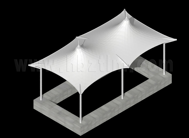 膜材采用PVDF国产或者进口建筑膜材、PTFE玻璃纤维建筑膜材、ETFE透明的永久性建筑膜材;自动放样裁剪,高频焊接,拉伸效果超强,曲线成型可千变万化;膜材质保一般可达15-20年。
