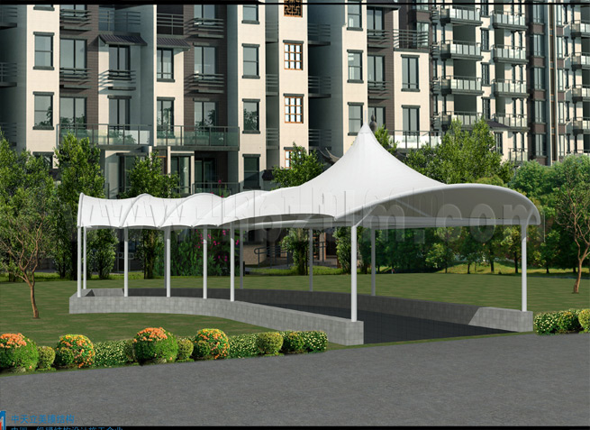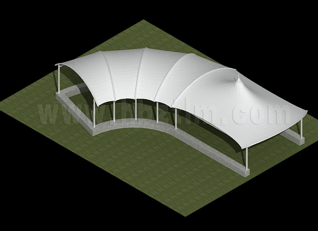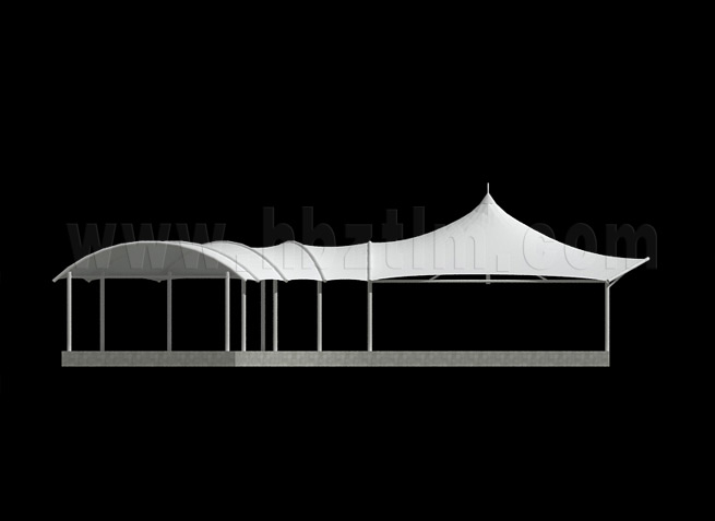 膜材采用PVDF国产或者进口建筑膜材、PTFE玻璃纤维建筑膜材、ETFE透明的永久性建筑膜材;自动放样裁剪,高频焊接,拉伸效果超强,曲线成型可千变万化;膜材质保一般可达15-20年。