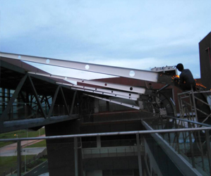 钢材选用Q235/Q345碳素钢、热镀锌或螺旋及无缝高强度优质钢材;抛丸防锈处理、喷漆,数控线切割、机拉/滚弯,钢构拼接造型及安装工艺等。