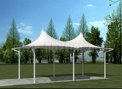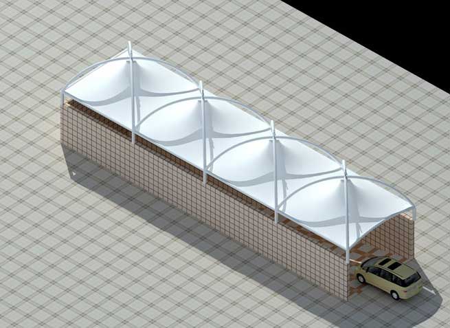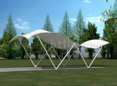 膜材采用PVDF国产或者进口建筑膜材、PTFE玻璃纤维建筑膜材、ETFE透明的永久性建筑膜材;自动放样裁剪,高频焊接,拉伸效果超强,曲线成型可千变万化;膜材质保一般可达15-20年。