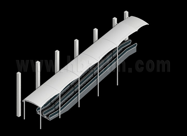 膜材采用PVDF国产或者进口建筑膜材、PTFE玻璃纤维建筑膜材、ETFE透明的永久性建筑膜材;自动放样裁剪,高频焊接,拉伸效果超强,曲线成型可千变万化;膜材质保一般可达15-20年。