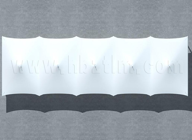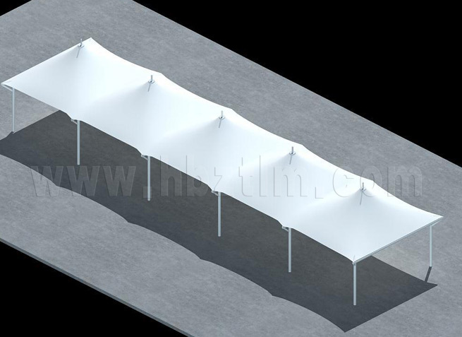 膜材采用PVDF国产或者进口建筑膜材、PTFE玻璃纤维建筑膜材、ETFE透明的永久性建筑膜材;自动放样裁剪,高频焊接,拉伸效果超强,曲线成型可千变万化;膜材质保一般可达15-20年。