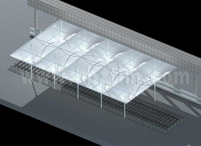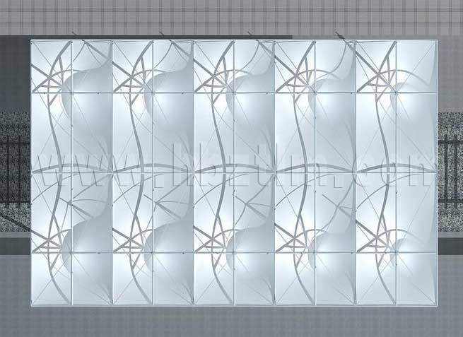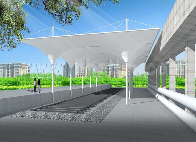 膜材采用PVDF国产或者进口建筑膜材、PTFE玻璃纤维建筑膜材、ETFE透明的永久性建筑膜材;自动放样裁剪,高频焊接,拉伸效果超强,曲线成型可千变万化;膜材质保一般可达15-20年。