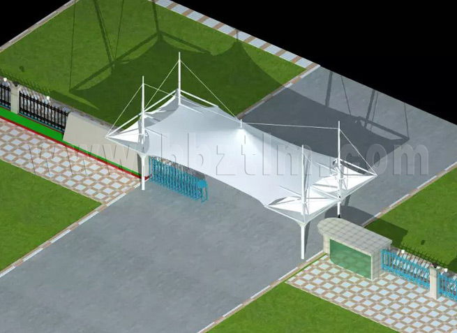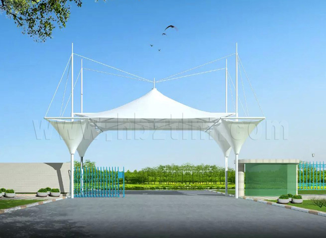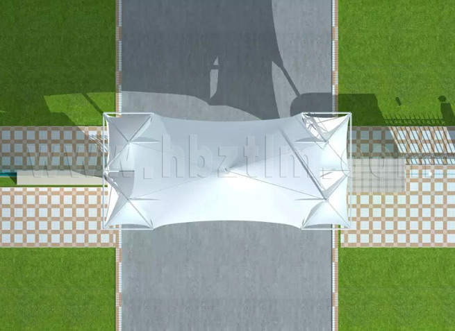 膜材采用PVDF国产或者进口建筑膜材、PTFE玻璃纤维建筑膜材、ETFE透明的永久性建筑膜材;自动放样裁剪,高频焊接,拉伸效果超强,曲线成型可千变万化;膜材质保一般可达15-20年。