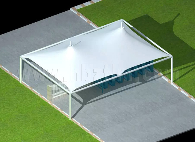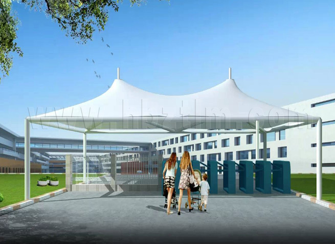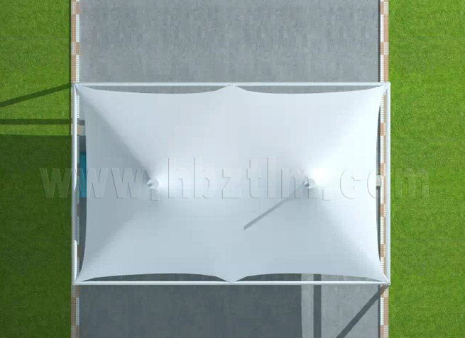 膜材采用PVDF国产或者进口建筑膜材、PTFE玻璃纤维建筑膜材、ETFE透明的永久性建筑膜材;自动放样裁剪,高频焊接,拉伸效果超强,曲线成型可千变万化;膜材质保一般可达15-20年。