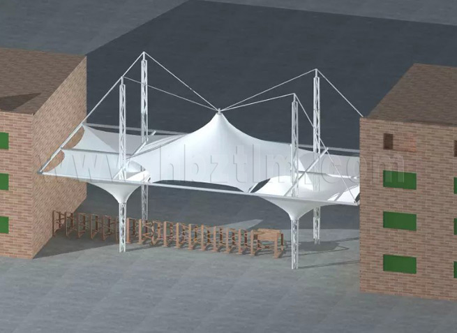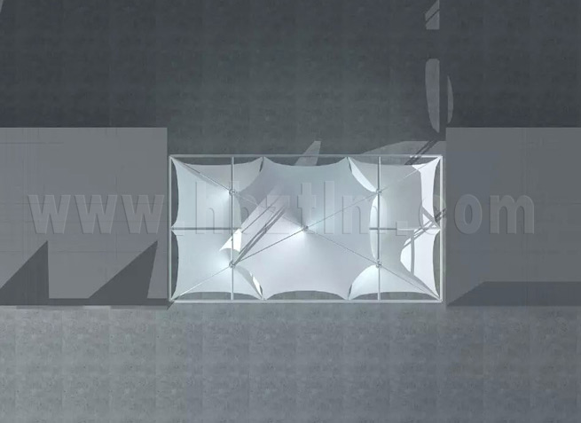 膜材采用PVDF国产或者进口建筑膜材、PTFE玻璃纤维建筑膜材、ETFE透明的永久性建筑膜材;自动放样裁剪,高频焊接,拉伸效果超强,曲线成型可千变万化;膜材质保一般可达15-20年。