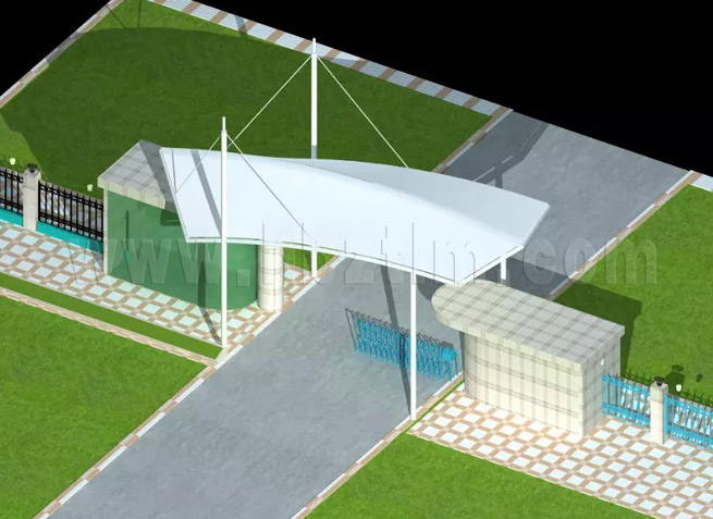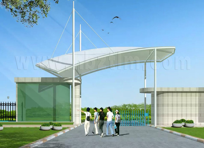 膜材采用PVDF国产或者进口建筑膜材、PTFE玻璃纤维建筑膜材、ETFE透明的永久性建筑膜材;自动放样裁剪,高频焊接,拉伸效果超强,曲线成型可千变万化;膜材质保一般可达15-20年。
