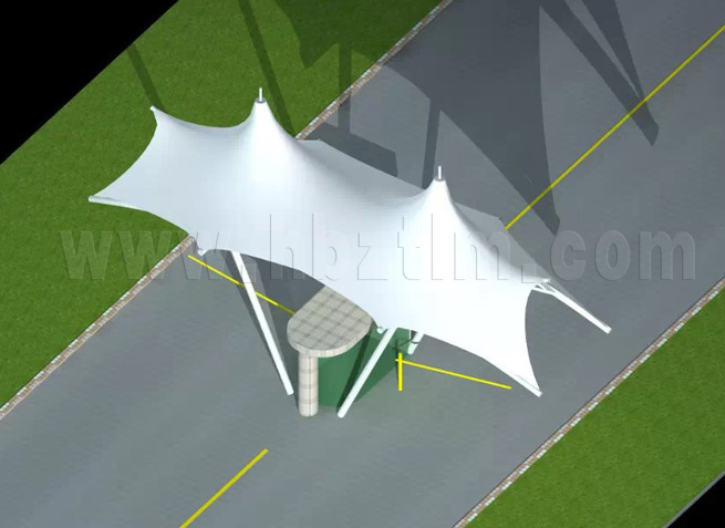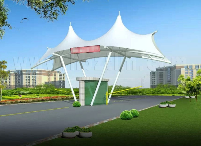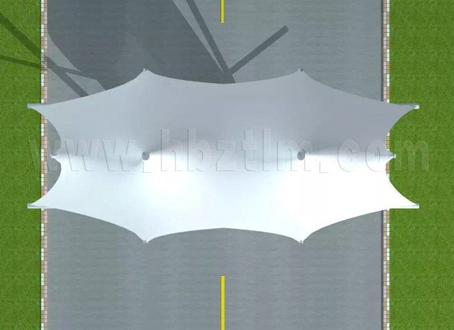 膜材采用PVDF国产或者进口建筑膜材、PTFE玻璃纤维建筑膜材、ETFE透明的永久性建筑膜材;自动放样裁剪,高频焊接,拉伸效果超强,曲线成型可千变万化;膜材质保一般可达15-20年。