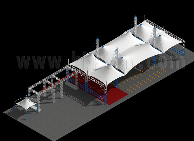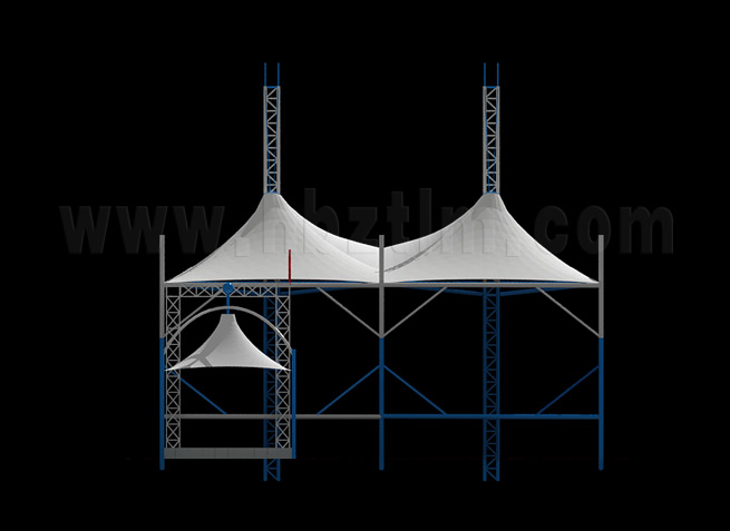 产品描述:钢材选用Q235/Q345钢材;膜材选用PVDF,PTFE ,ETFE国产/进口膜材,颜色可自选