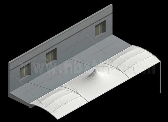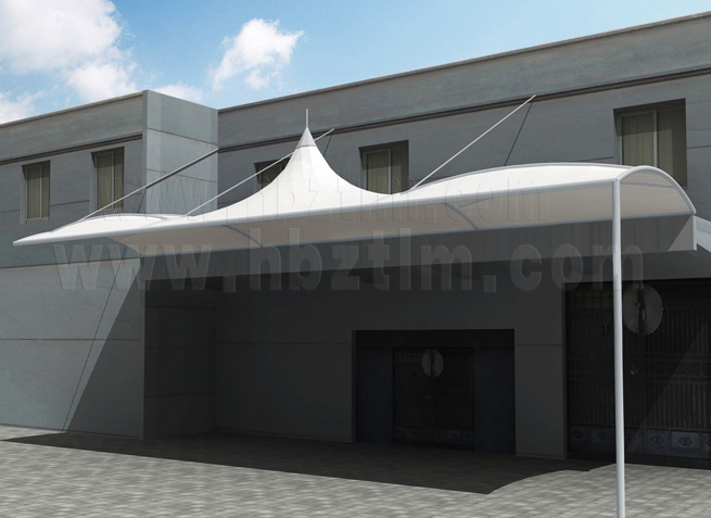 膜材采用PVDF国产或者进口建筑膜材、PTFE玻璃纤维建筑膜材、ETFE透明的永久性建筑膜材;自动放样裁剪,高频焊接,拉伸效果超强,曲线成型可千变万化;膜材质保一般可达15-20年。