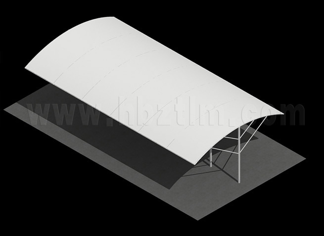 膜材采用PVDF国产或者进口建筑膜材、PTFE玻璃纤维建筑膜材、ETFE透明的永久性建筑膜材;自动放样裁剪,高频焊接,拉伸效果超强,曲线成型可千变万化;膜材质保一般可达15-20年。