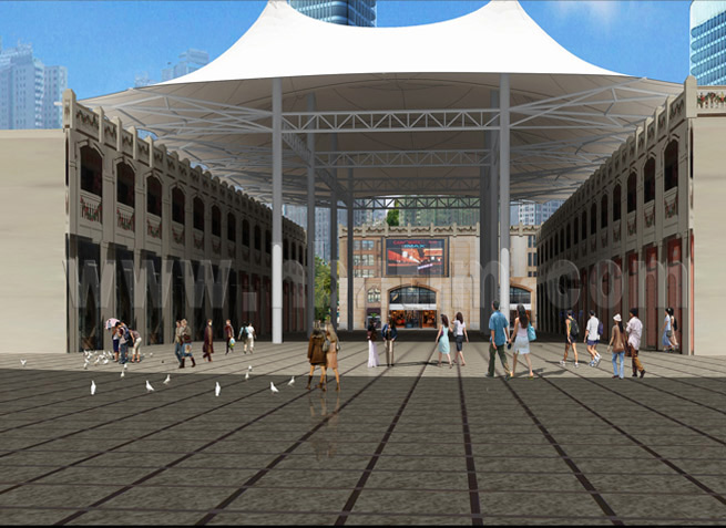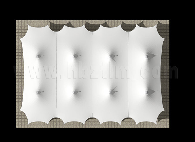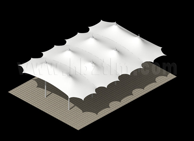 膜材采用PVDF国产或者进口建筑膜材、PTFE玻璃纤维建筑膜材、ETFE透明的永久性建筑膜材;自动放样裁剪,高频焊接,拉伸效果超强,曲线成型可千变万化;膜材质保一般可达15-20年。