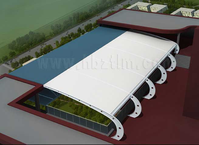 膜材采用PVDF国产或者进口建筑膜材、PTFE玻璃纤维建筑膜材、ETFE透明的永久性建筑膜材;自动放样裁剪,高频焊接,拉伸效果超强,曲线成型可千变万化;膜材质保一般可达15-20年。