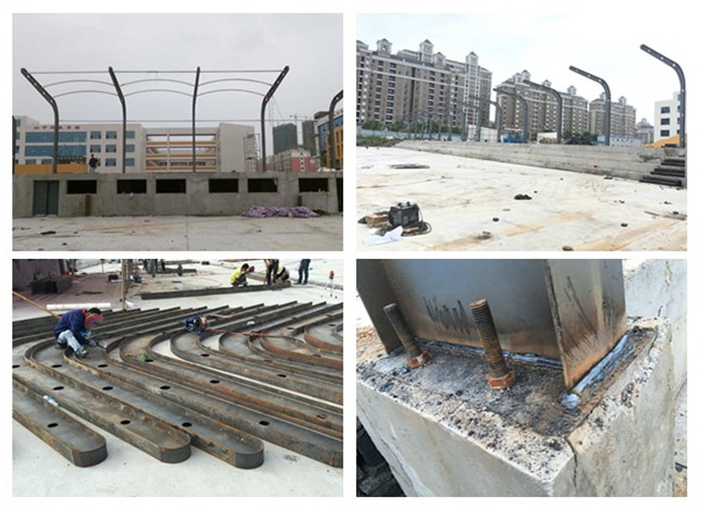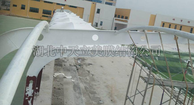 图1 安陆学校体育看台膜结构钢结构现场施工图