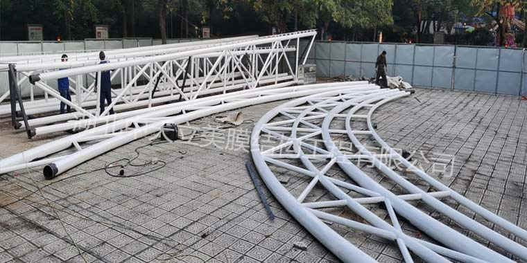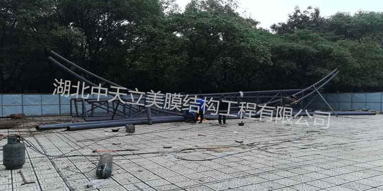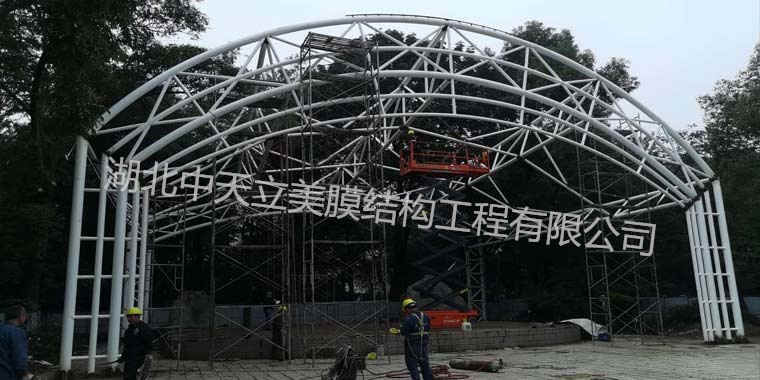 中天立美膜结构工程公司 2011年成立致今,已拥有自主的膜材加工厂,专业施工团队,已成功安装膜结构工程项目数千,客户遍及全国各地;公司最近几年大型施工案例有:辽宁财贸学院体育看台膜结构,荆门看飞客大门膜结构 荆门欢乐世界冲浪池膜结构等膜结构项目。