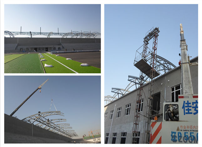 图1 辽宁财贸学院体育看台膜结构钢结构现场施工图