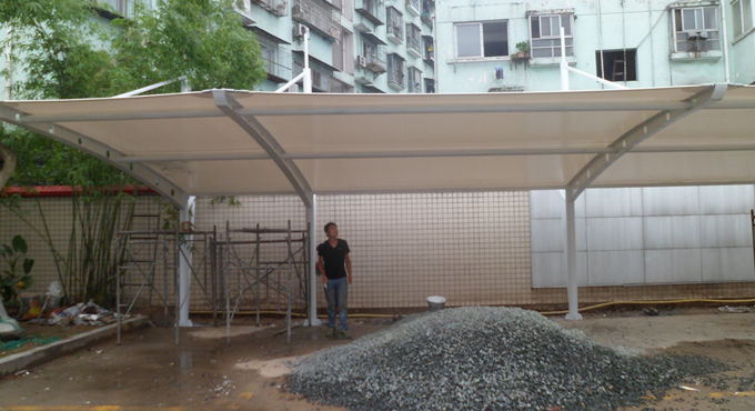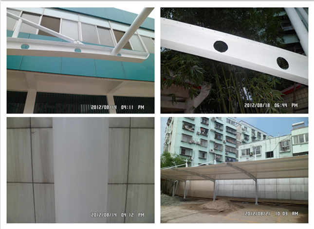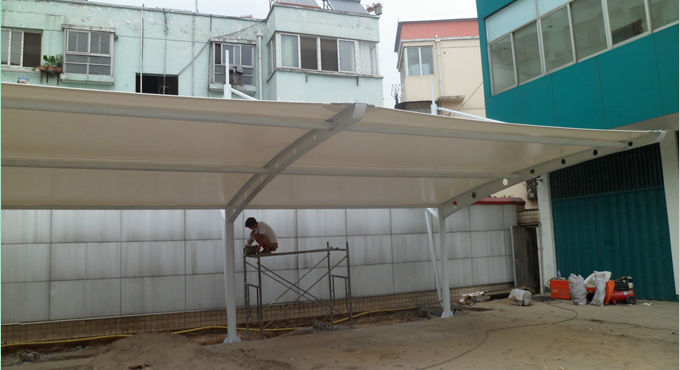 十堰电力马鞍式异形钢膜结构车棚,本项目采用前软边后硬边张拉形式;结构由立柱、拉杆、挑梁、横杆构成,其挑梁和中间横杆一般采用异形钢挑梁形式,美观而不积水且抗负荷能力强;膜材采用ZZF白色建筑膜材,15年质保,整体结构美观实用,经济牢固,臻至完美。