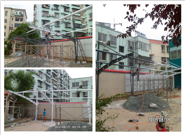 图2 十堰电力马鞍式异形钢膜结构车棚现场施工图