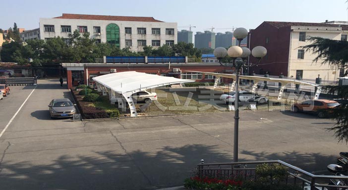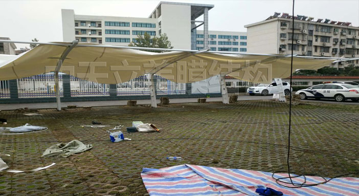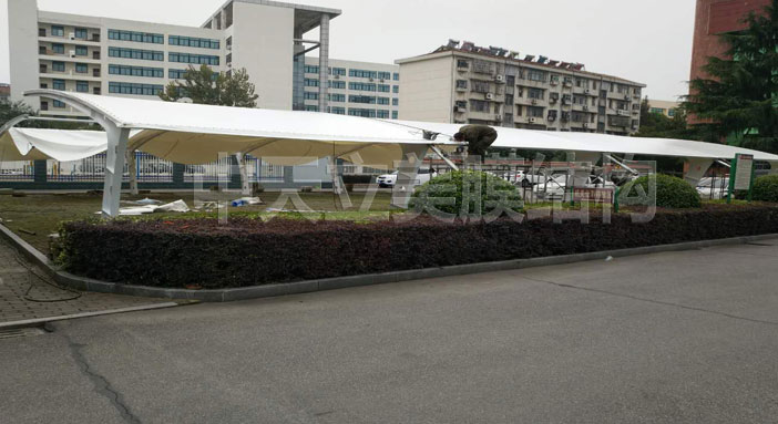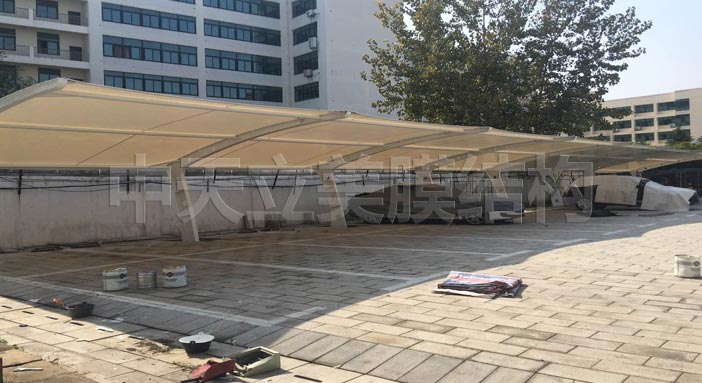 经过工程施工人员20天稳步施工,膜结构车棚竣工啦!已通过业主验收并交付业主,以下图片是三处地方膜结构车棚成品照片及细节图展示。