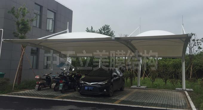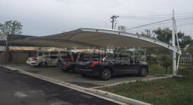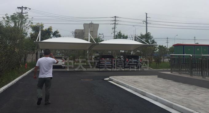 该项目膜结构车棚共三处地方,客户选择吊塔式膜结构车棚样式,此样式美观,大方,功能性强,抗风遮阳避雨效果好,是客户选择比较多的车棚样式之一。