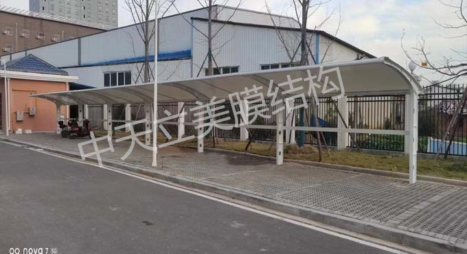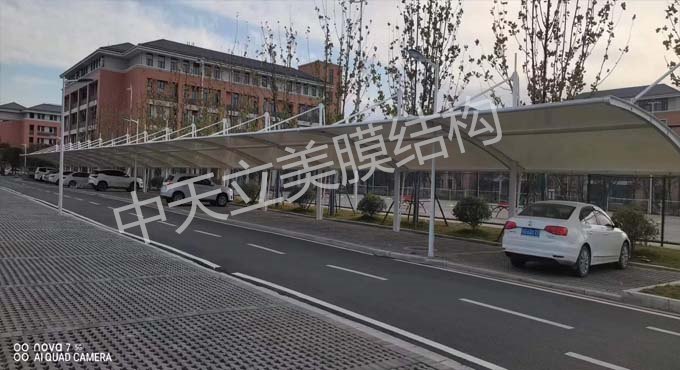鄂州二中膜结构车棚项目已完工,该项目分6处地方,有膜结构汽车停车棚,膜结构电动车停车棚,总面积2906m²。