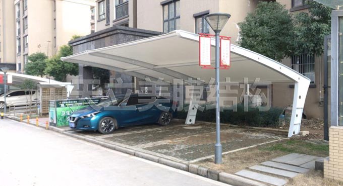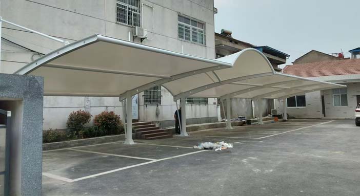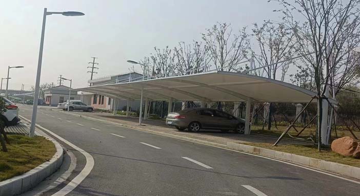 鄂州二中膜结构车棚项目已完工,该项目分6处地方,有汽车停车棚,电动车停车棚,总面积2906m²。