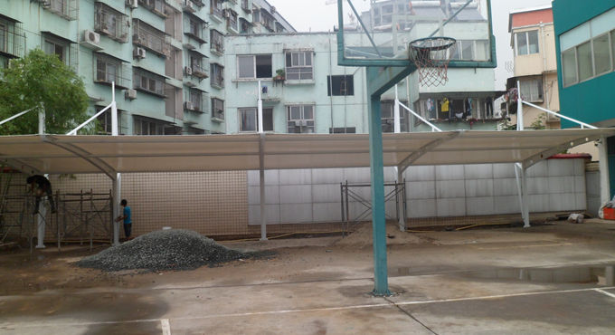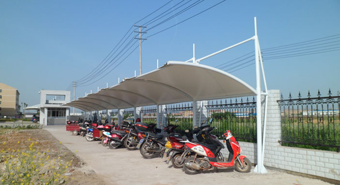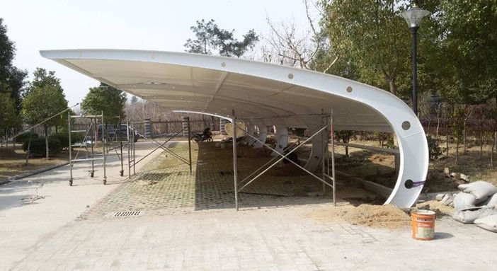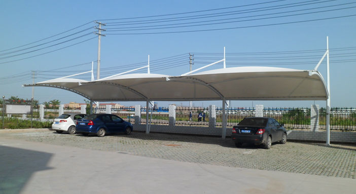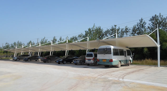 十堰电力马鞍式异形钢膜结构车棚,本项目采用前软边后硬边张拉形式;结构由立柱、拉杆、挑梁、横杆构成,其挑梁和中间横杆一般采用异形钢挑梁形式,美观而不积水且抗负荷能力强;膜材采用PVDF白色车棚专用建筑膜材,15年质保,整体结构美观实用,经济牢固,臻至完美。