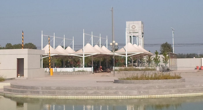 湖北美味源公司吊塔式圆管膜结构自行车车棚,本项目采用前软边后硬边张拉形式,结构由立柱、拉杆、挑梁、横杆构成,其挑梁和中间横杆一般采用弧管形式,美观而不积水且抗负荷能力强;膜材采用ZZF白色建筑膜材,15年质保,整体结构美观实用,经济牢固,臻至完美。