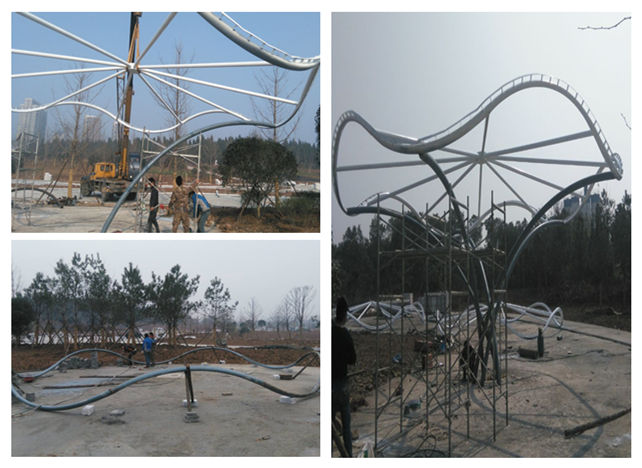 图1 千佛洞植物园景观膜结构钢结构现场施工图