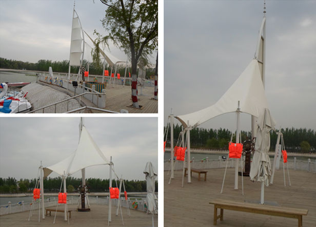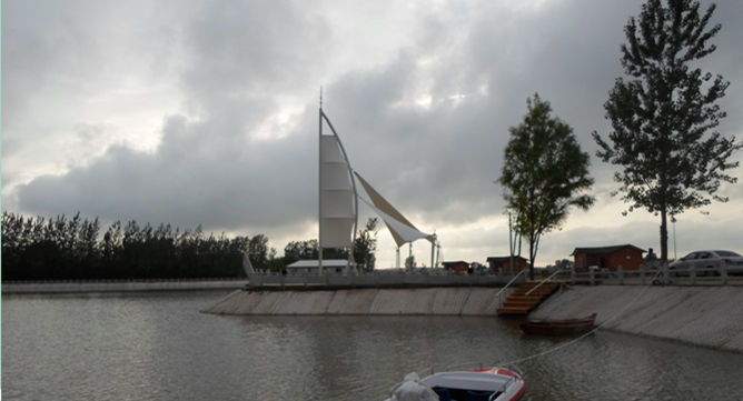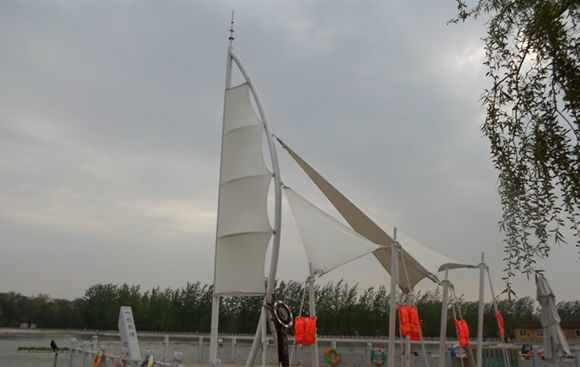 辽宁盘锦一帆风顺景观小品膜结构,该项目是典型的张拉景观膜结构,以风帆为原型设计,造型完美,做工精细,层次感非常强,巍然屹立,雄伟而优美,其意境也丰富,蒸蒸日上 一帆风顺!此类含义景观膜结构广泛运用于广场、地标、各种场所的重点地方处等。