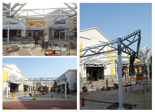图1 百联奥特莱斯促销台景观膜结构钢结构现场施工图