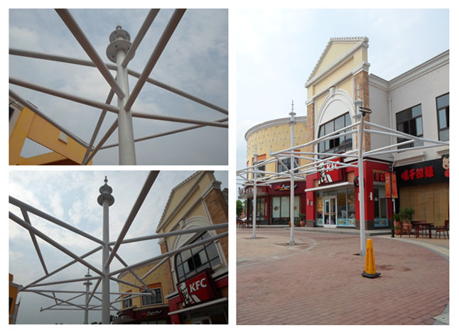 图1 百联奥特莱斯三连帽休闲景观遮阳伞膜结构钢结构现场施工图