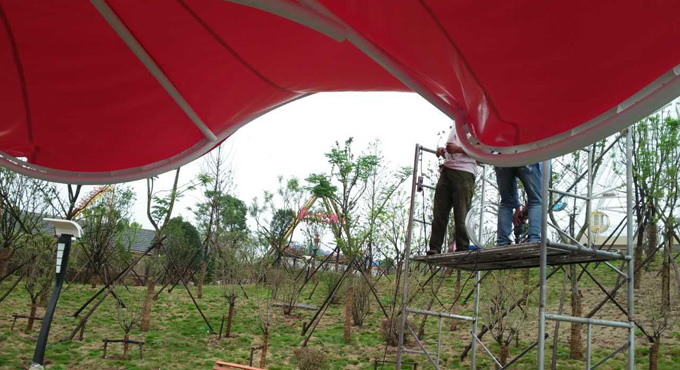 图2 荆门市欢乐世界景观膜结构现场施工图