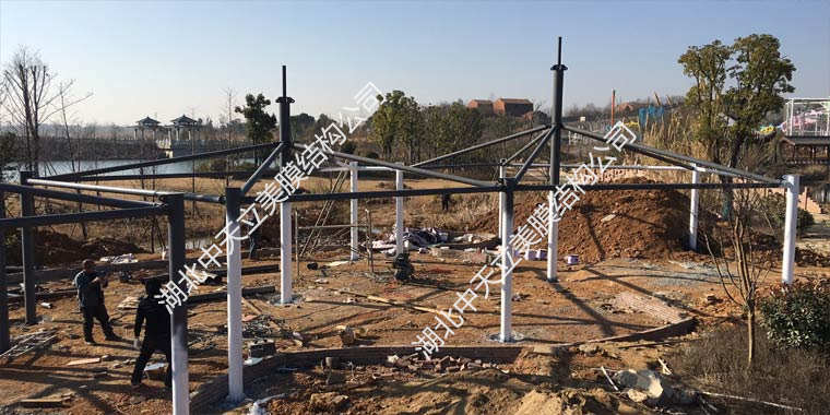中天立美膜结构工程公司 2011年成立致今,已拥有自主的膜材加工厂,专业施工团队,已成功安装膜结构工程项目数千,客户遍及全国各地;公司最近几年大型施工案例有:辽宁财贸学院体育看台膜结构,荆门看飞客大门膜结构 荆门欢乐世界冲浪池膜结构等膜结构项目。
