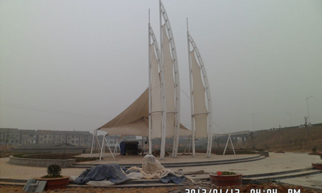宜都枝城广场景观膜结构工程,该项目是典型的张拉景观膜结构,以风帆为原型设计,造型完美,做工精细,层次感非常强,巍然屹立,雄伟而优美,其意境也丰富,蒸蒸日上 一帆风顺!此类含义景观膜结构广泛运用于广场、地标、各种场所的重点地方处等。