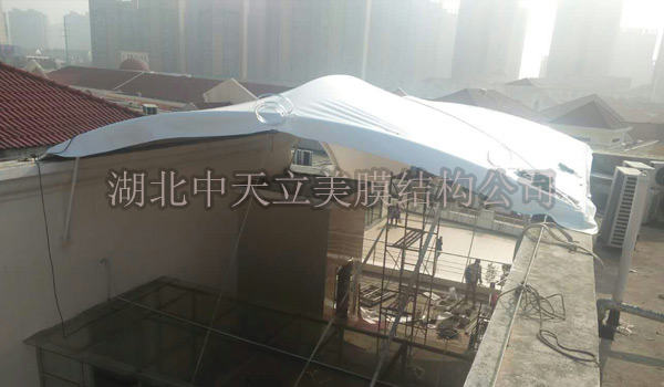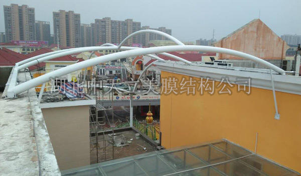 武汉盘龙城奥特莱斯屋顶顶棚现场拉膜施工图