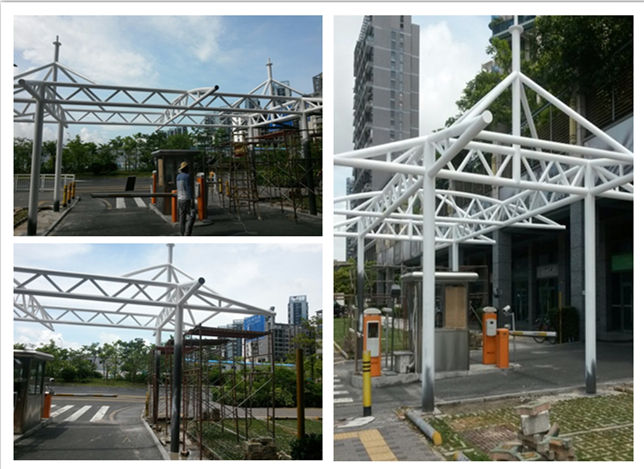 图1 深圳罗湖小区大门门头膜结构钢结构现场施工图