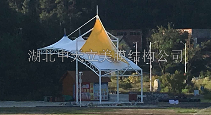 十堰市樱桃小镇亲子乐园大门门头膜结构现场钢结构施工图现场膜结构施工图完工图